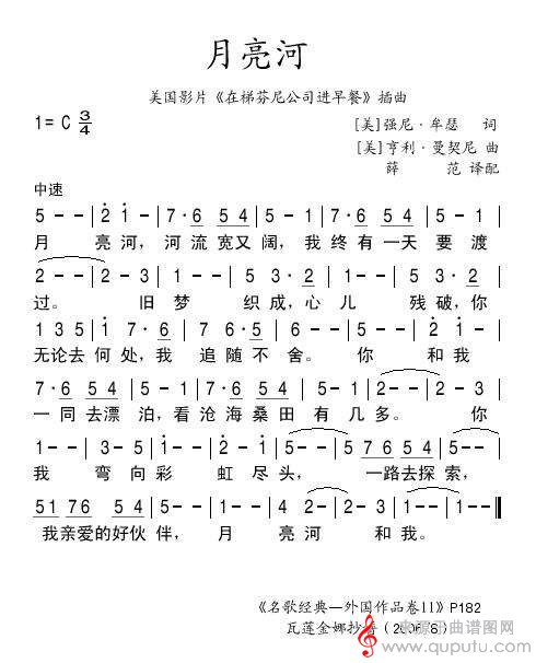 曲谱图网为您提供月亮河名歌简谱(月亮河洞箫乐曲简谱)找谱子,就上曲谱图网。