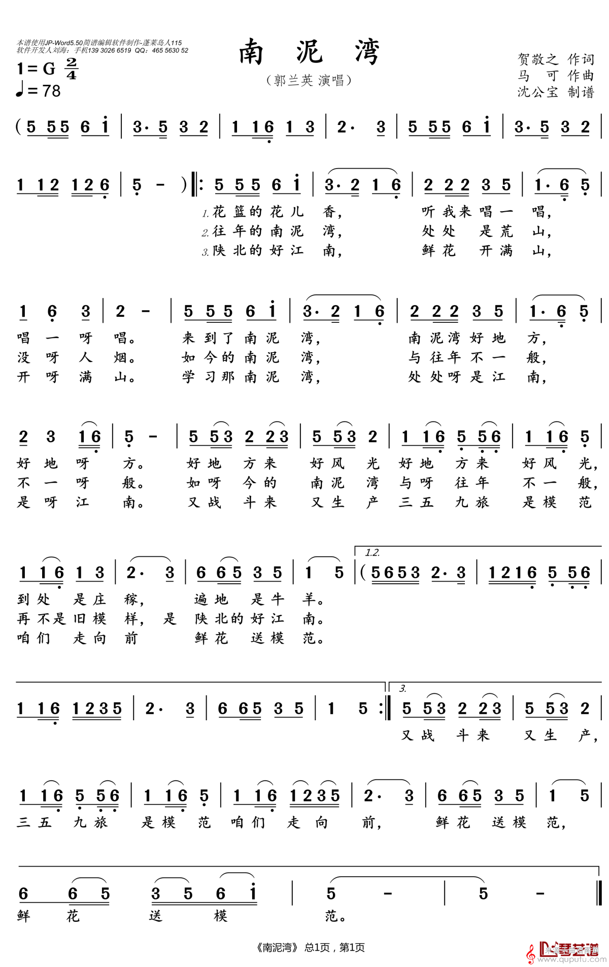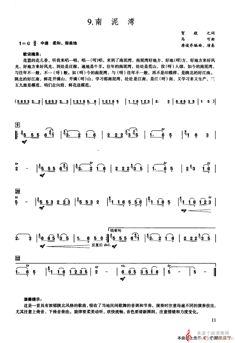 曲谱图网为您提供南泥湾曲谱(南泥湾笛子独奏简谱)找谱子,就上曲谱图网。