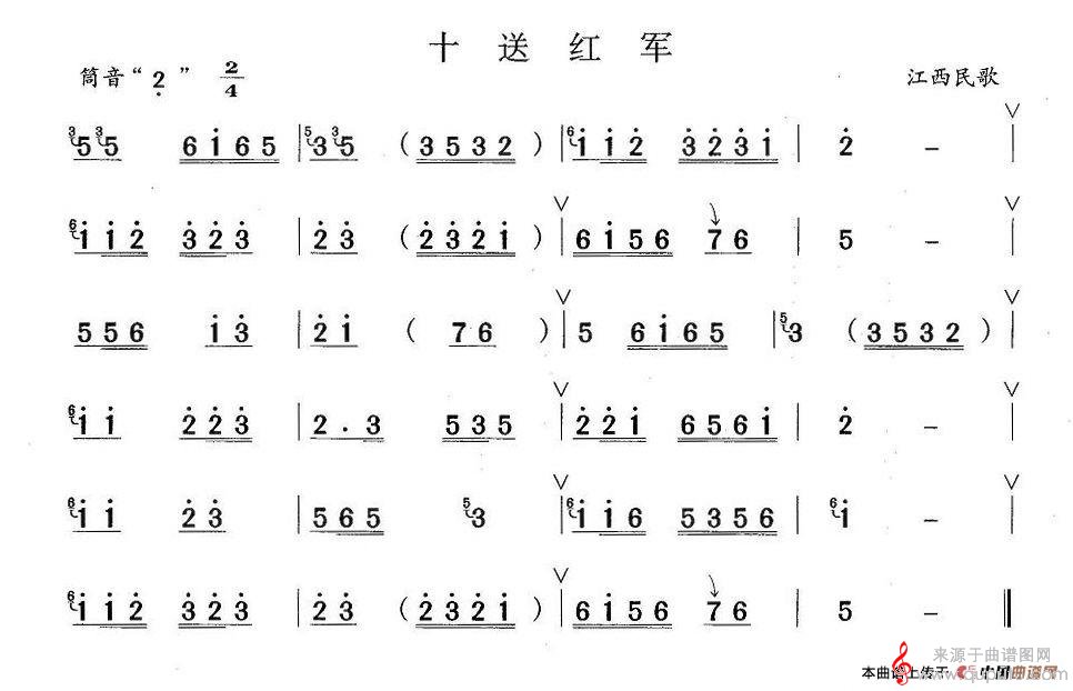 曲谱图网为您提供十送红军民歌简谱(十送红军笛子独奏曲谱)找谱子,就上曲谱图网。