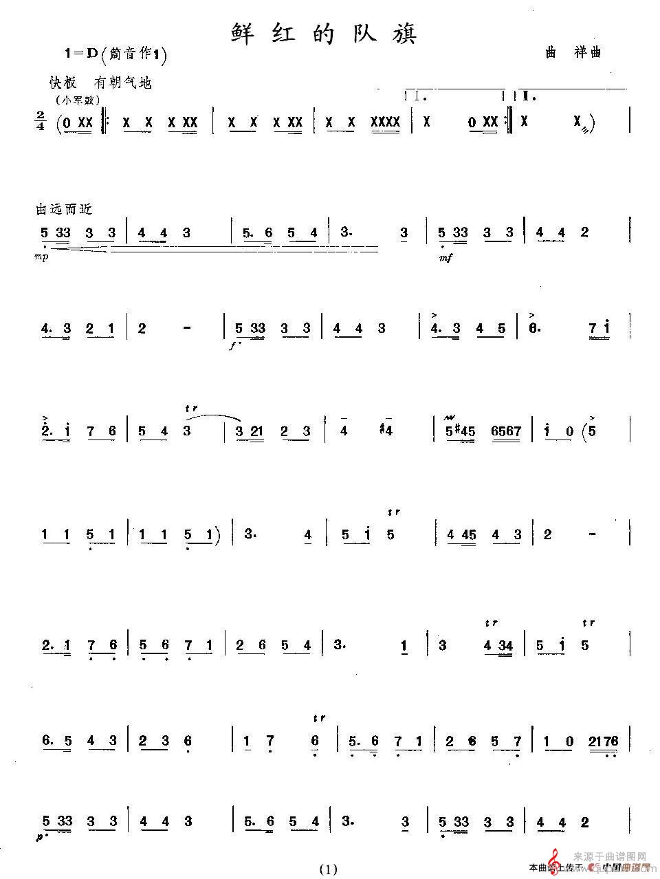 曲谱图网为您提供鲜红的队旗简谱(鲜红的队旗民乐竹笛演奏简谱)找谱子,就上曲谱图网。