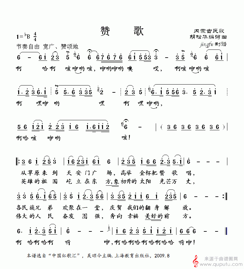 曲谱图网为您提供赞歌民歌简谱(赞歌笛子独奏简谱)找谱子,就上曲谱图网。