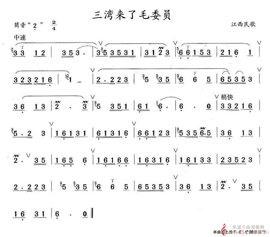 三湾来了毛委员歌曲简谱(三湾来了毛委员洞箫伴奏曲谱)