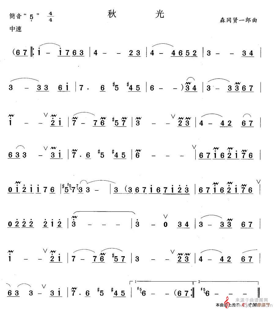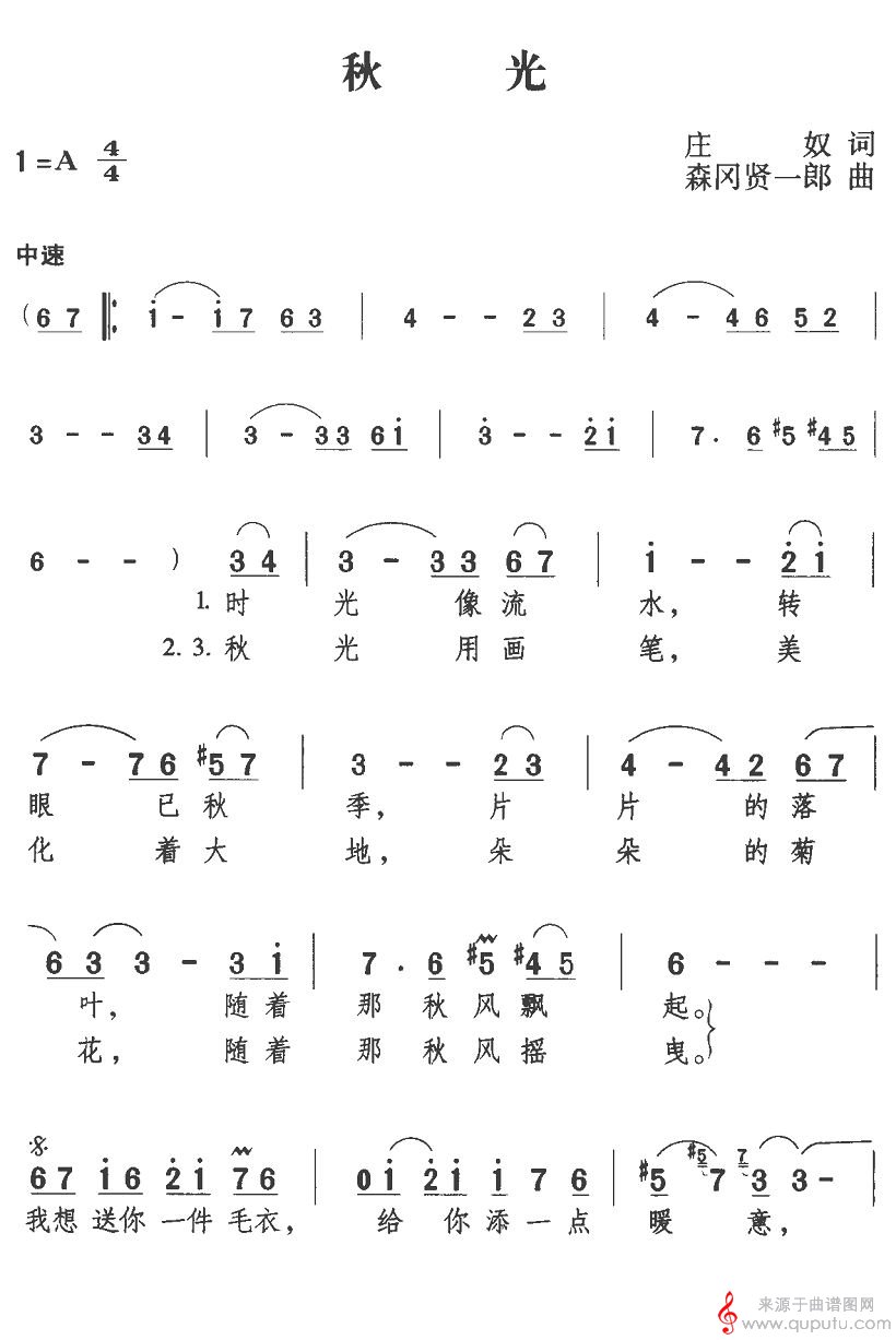 曲谱图网为您提供秋光歌曲简谱(秋光笛子演奏简谱)找谱子,就上曲谱图网。