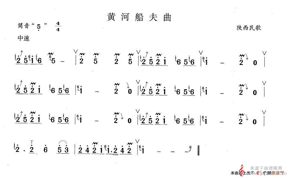 曲谱图网为您提供黄河船夫曲民歌曲谱(黄河船夫曲洞箫乐曲曲谱)找谱子,就上曲谱图网。