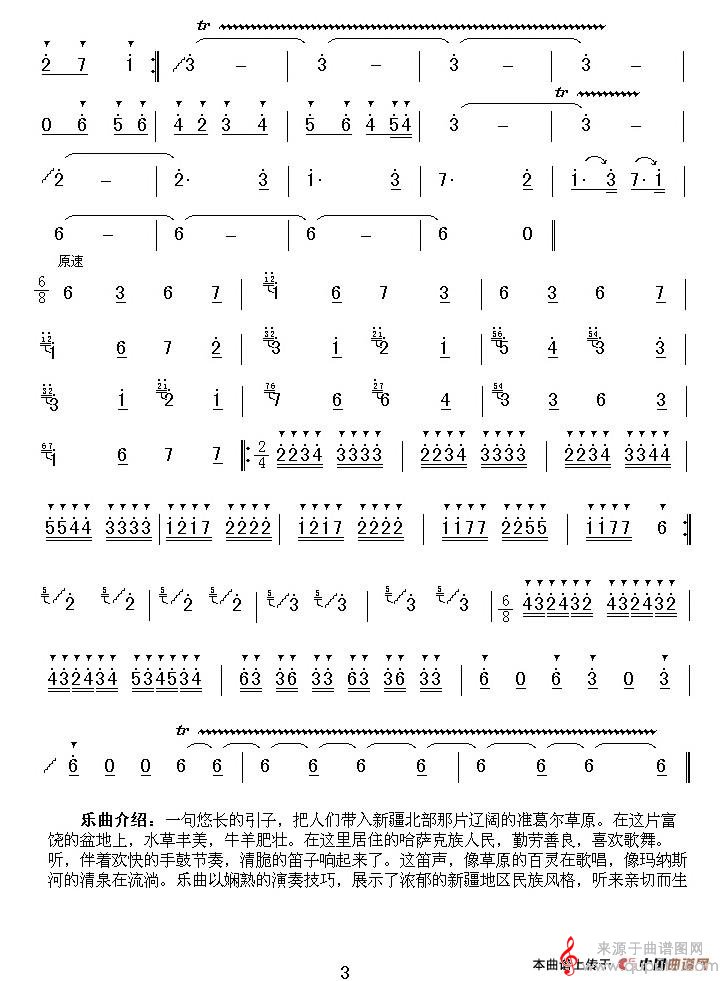 曲谱图网为您提供欢乐的准葛尔简谱(欢乐的准葛尔笛子独奏曲谱)找谱子,就上曲谱图网。