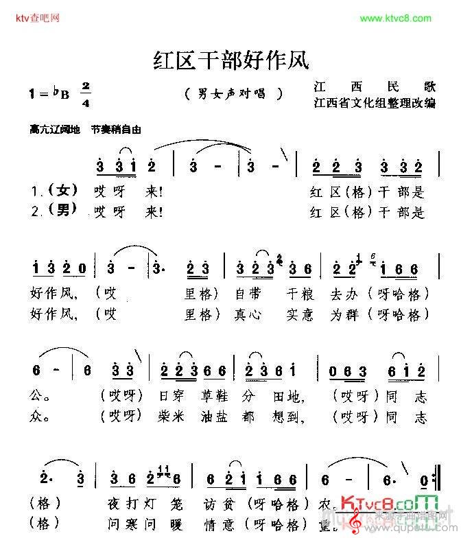 曲谱图网为您提供红区干部好作风民歌曲谱(红区干部好作风洞箫乐曲曲谱)找谱子,就上曲谱图网。