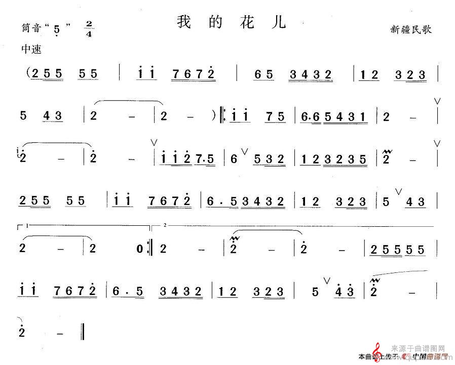 曲谱图网为您提供我的花儿民歌曲谱(我的花儿洞箫乐曲谱)找谱子,就上曲谱图网。