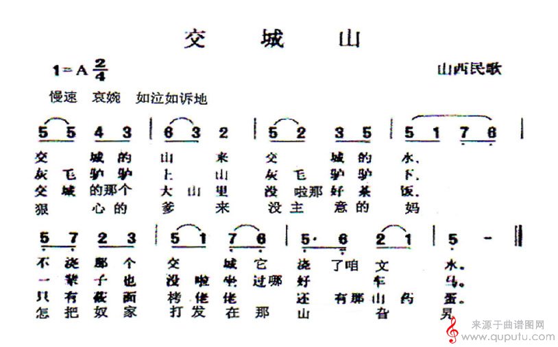 交城山民歌曲谱(交城山洞箫乐曲谱)