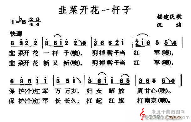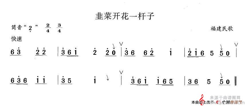 曲谱图网为您提供韭菜开花一竿子民歌简谱(韭菜开花一竿子洞箫乐曲曲谱)找谱子,就上曲谱图网。