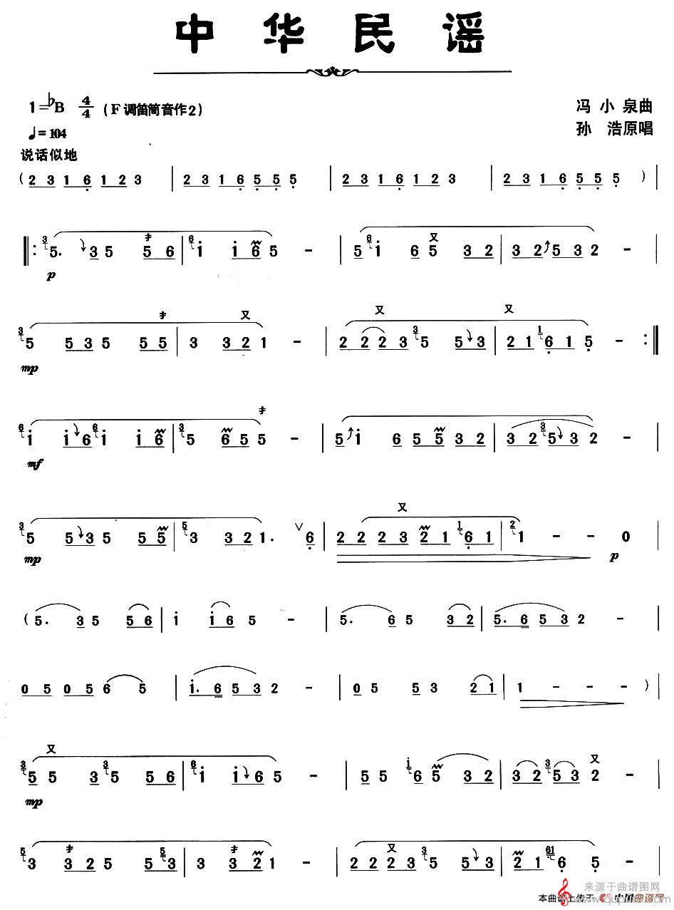 曲谱图网为您提供中华民谣简谱(中华民谣笛子独奏简谱)找谱子,就上曲谱图网。