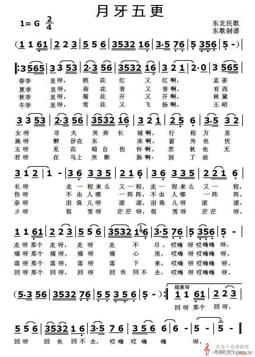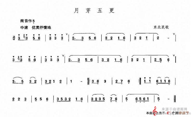 曲谱图网为您提供月芽五更民歌简谱(月牙五更笛子独奏曲谱)找谱子,就上曲谱图网。