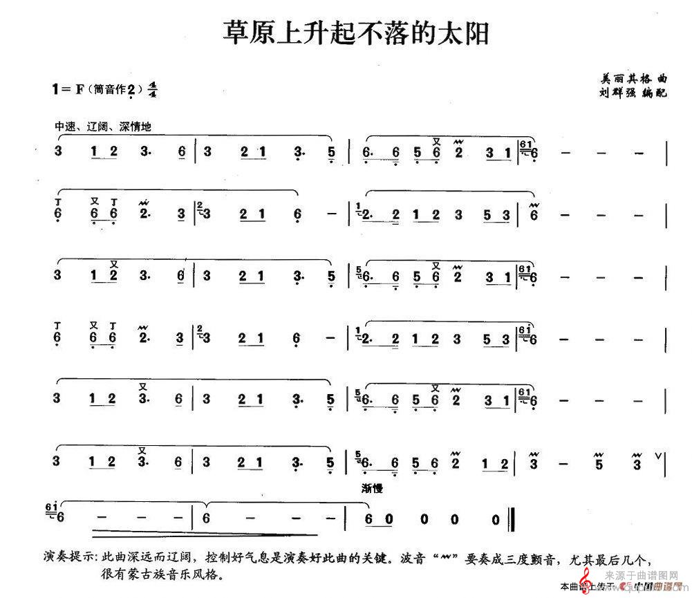 曲谱图网为您提供草原上升起不落的太阳曲谱(草原上升起不落的太阳洞箫独奏简谱)找谱子,就上曲谱图网。
