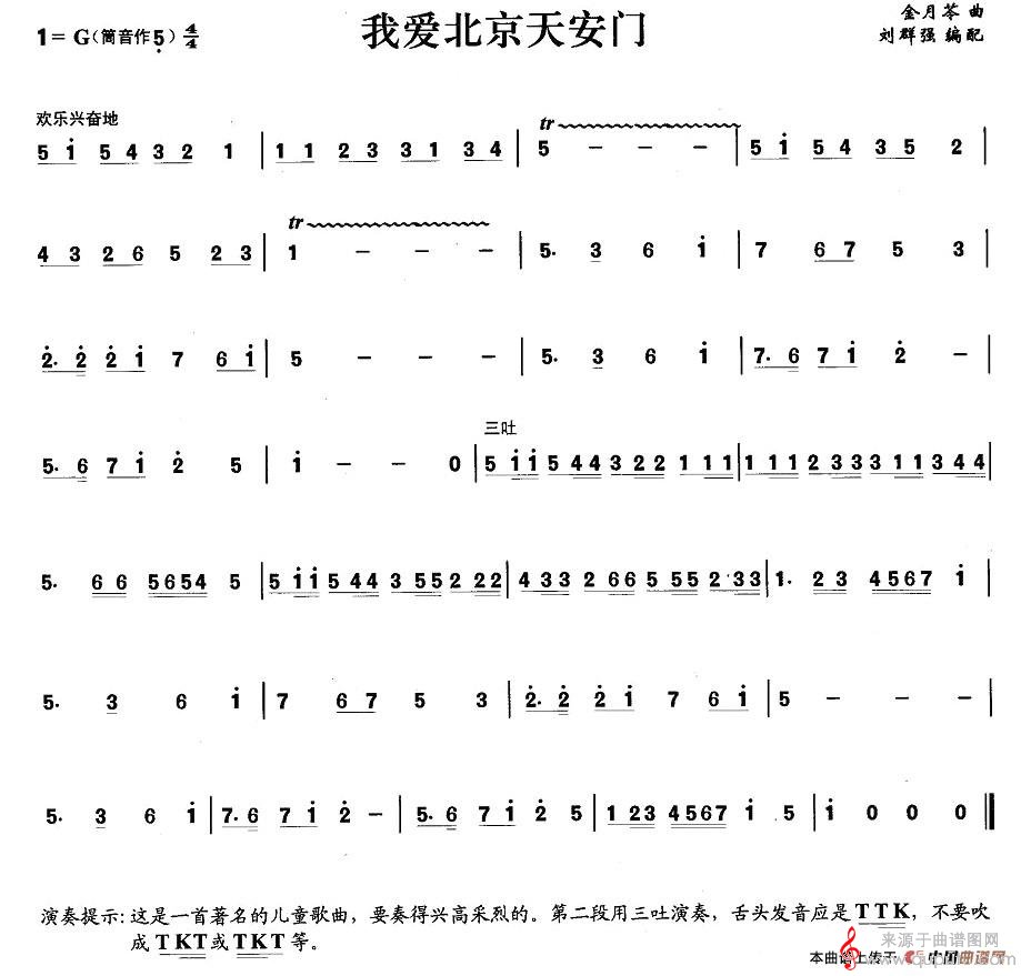曲谱图网为您提供我爱北京天安门曲谱(刘群强编配版)(我爱北京天安门竹笛演奏曲谱)找谱子,就上曲谱图网。