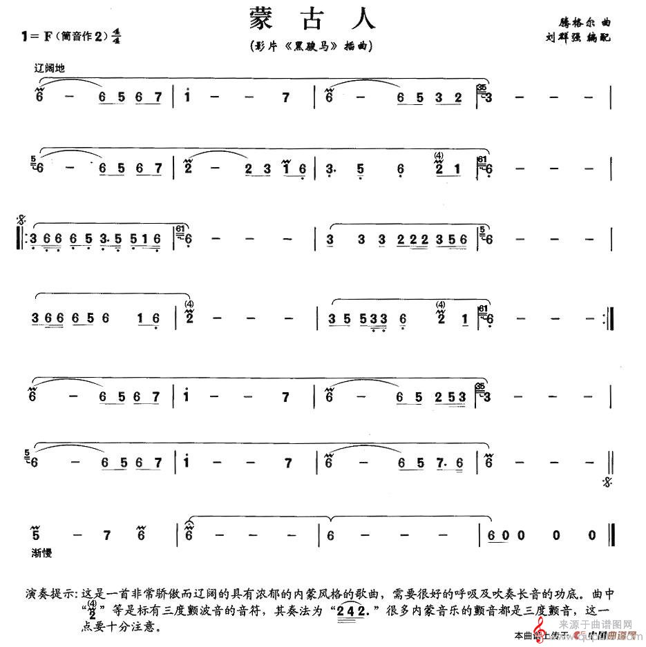 蒙古人简谱(电影《黑骏马》插曲)(蒙古人洞箫独奏简谱)