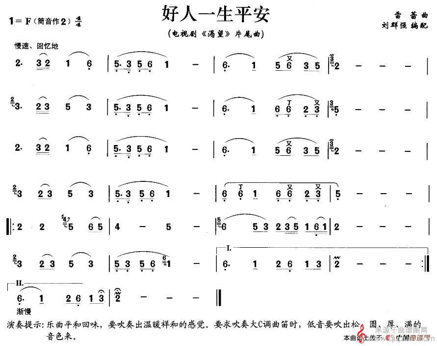 好人一生平安简谱(好人一生平安洞箫独奏简谱)