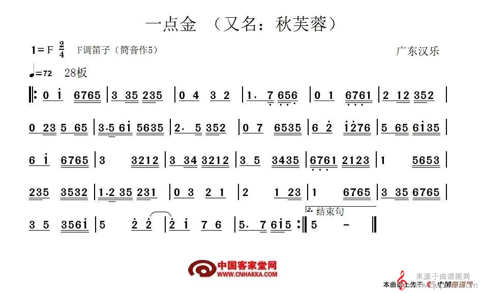 一点金曲谱(又名:秋芙蓉、广东汉乐)(一点金洞箫乐曲曲谱)