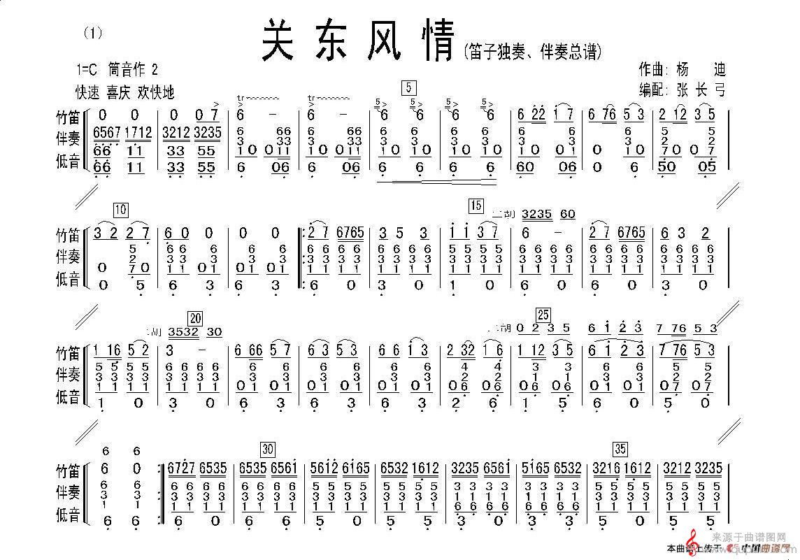 曲谱图网为您提供关东风情曲谱(关东风情笛子独奏伴奏总谱)找谱子,就上曲谱图网。