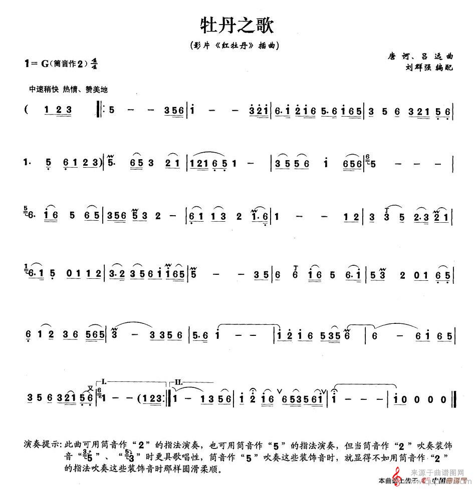 牡丹之歌曲谱(牡丹之歌笛子独奏谱)