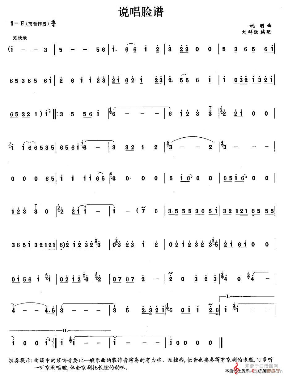 说唱脸谱简谱(说唱脸谱笛子独奏曲谱)