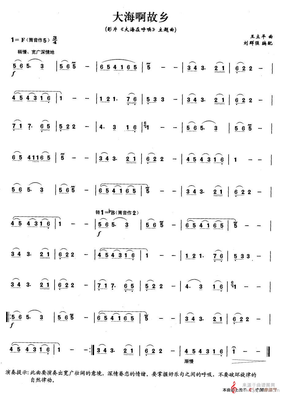 曲谱图网为您提供大海啊故乡曲谱(大海啊故乡陶笛演奏简谱)找谱子,就上曲谱图网。
