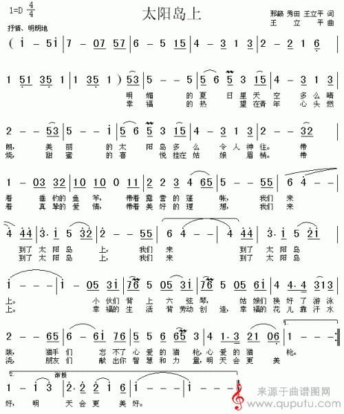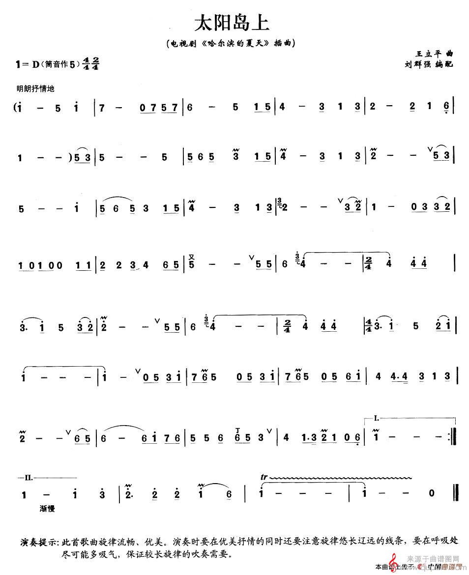 曲谱图网为您提供太阳岛上歌曲简谱(太阳岛上笛子独奏简谱)找谱子,就上曲谱图网。