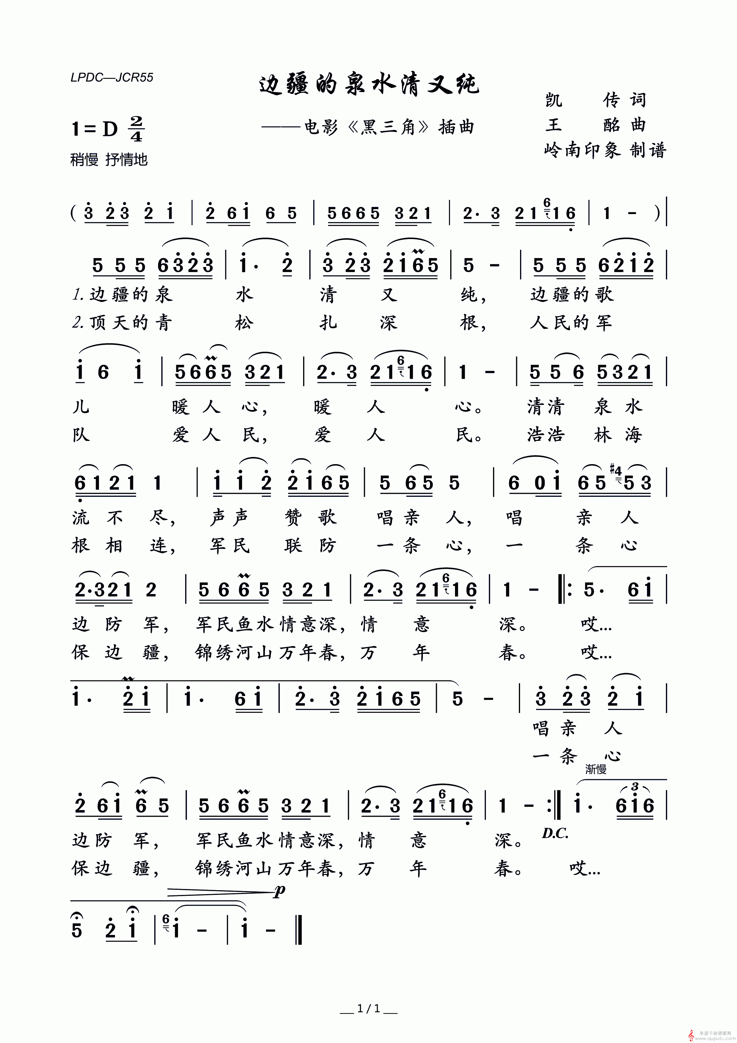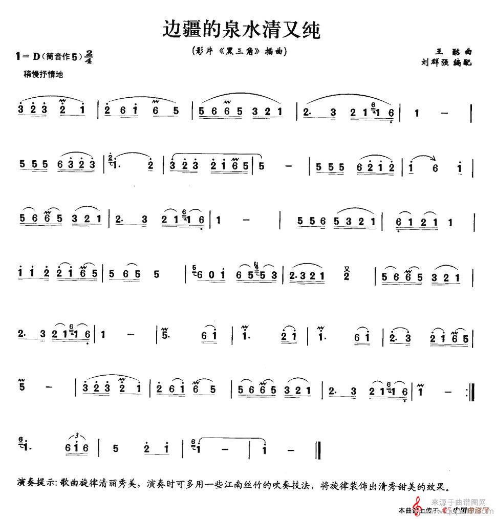 曲谱图网为您提供边疆的泉水清又纯就简谱(边疆的泉水清又纯笛子独奏曲谱)找谱子,就上曲谱图网。