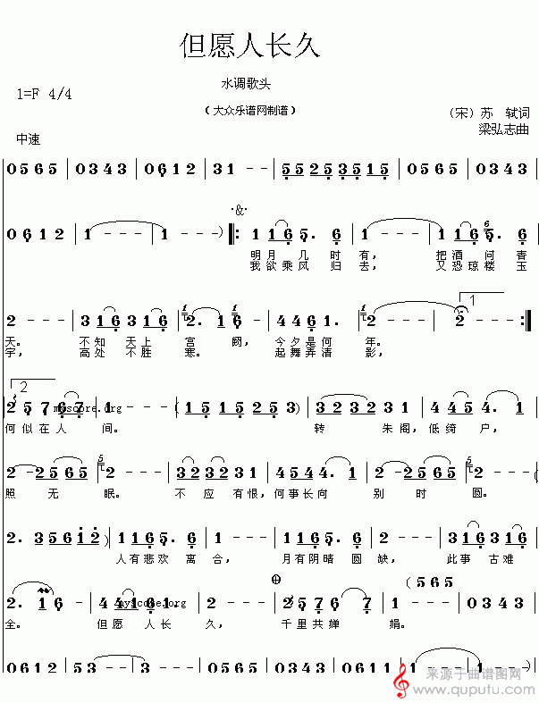 曲谱图网为您提供但愿人长久曲谱(但愿人长久萧独奏简谱)找谱子,就上曲谱图网。