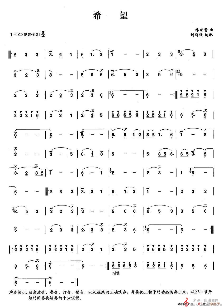 曲谱图网为您提供希望金曲曲谱(希望初级笛子独奏谱)找谱子,就上曲谱图网。