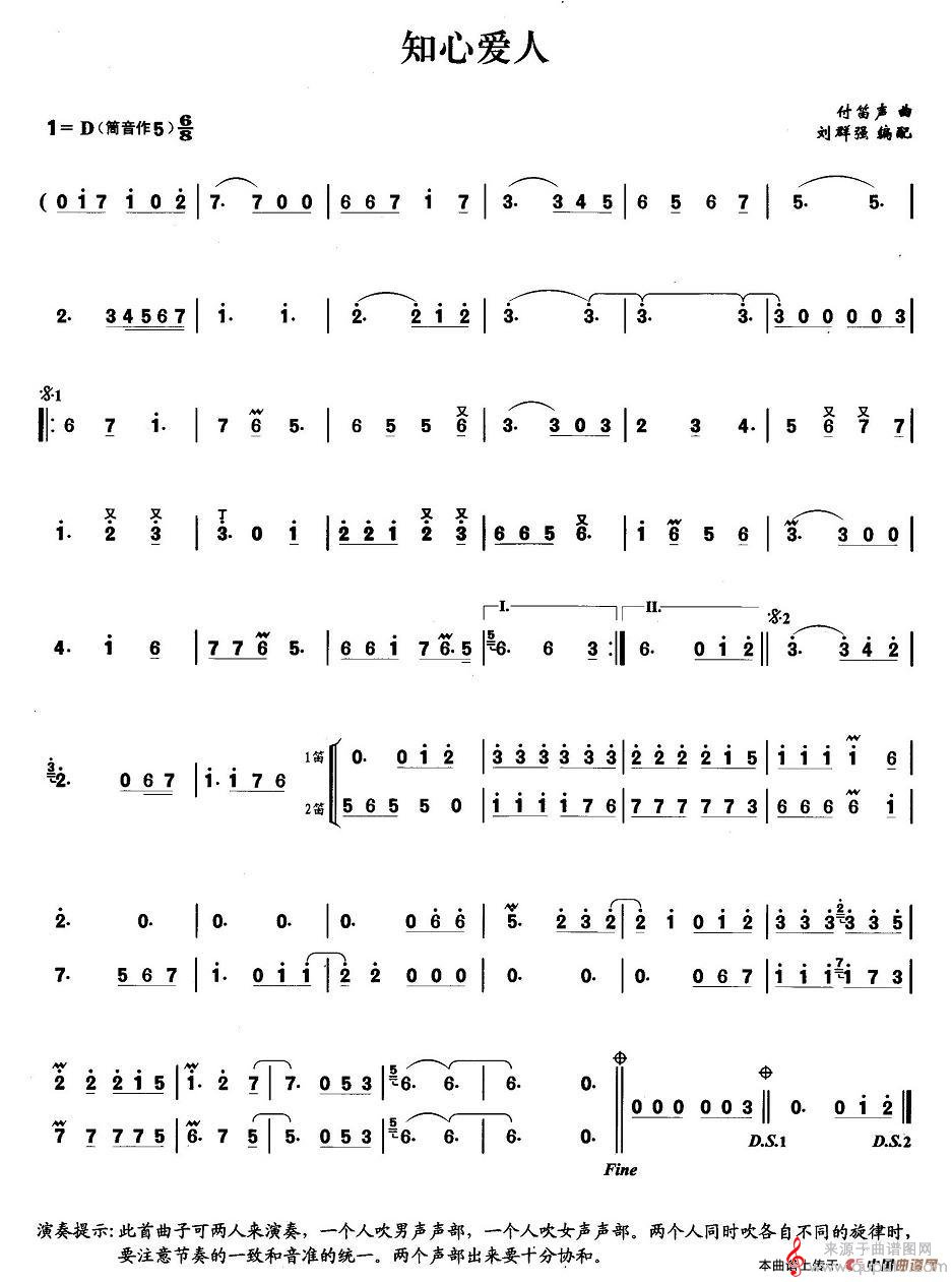 知心爱人五线谱(知心爱人长笛演奏简谱)