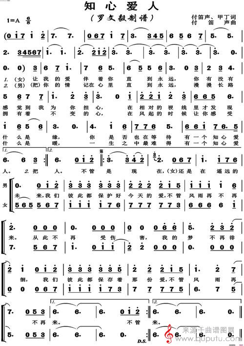 曲谱图网为您提供知心爱人五线谱(知心爱人长笛演奏简谱)找谱子,就上曲谱图网。