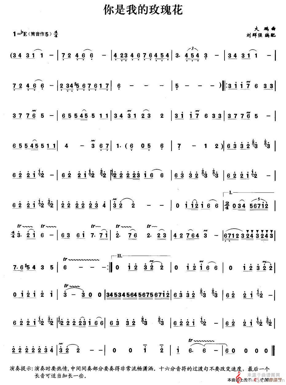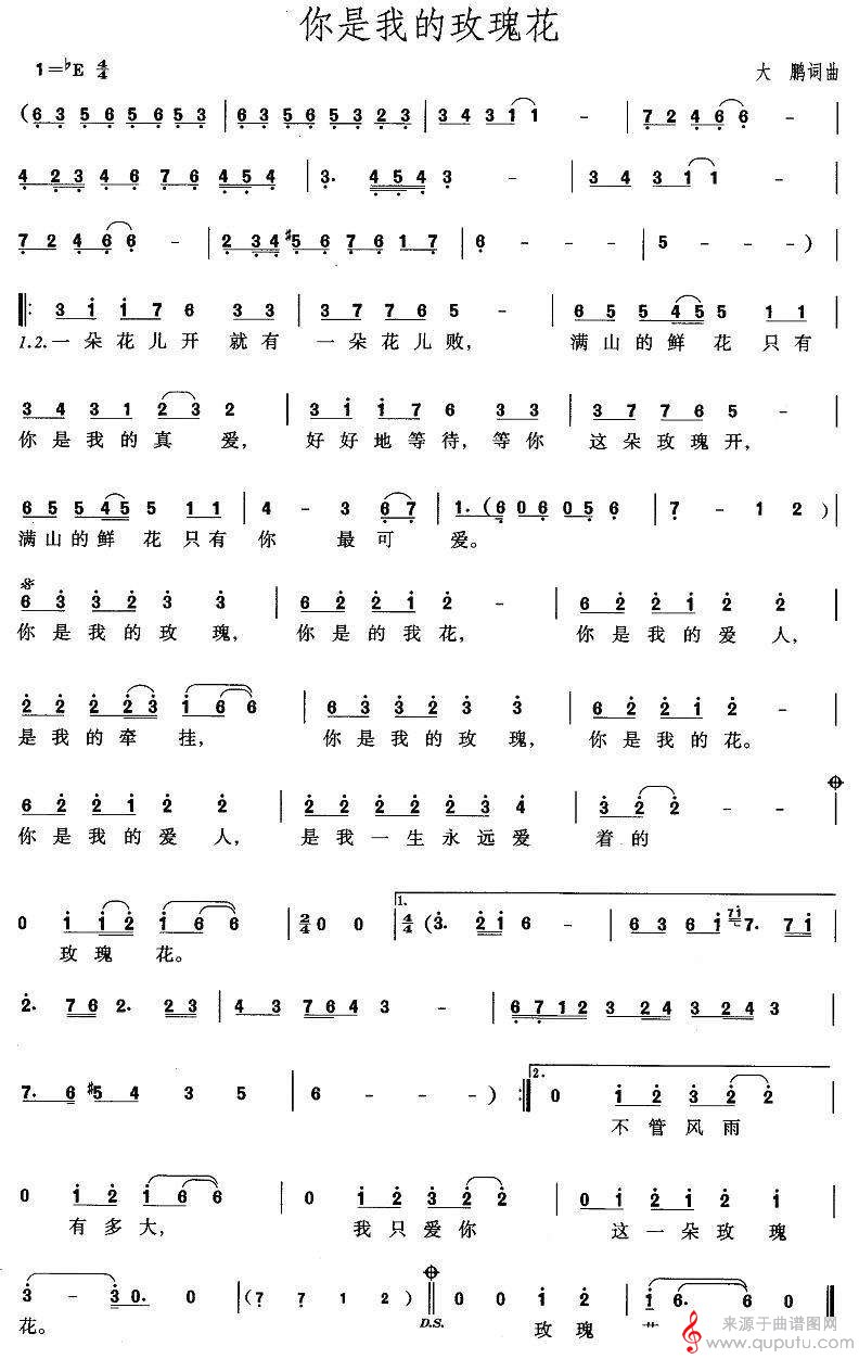曲谱图网为您提供你是我的玫瑰花曲谱(你是我的玫瑰花笛子演奏曲谱)找谱子,就上曲谱图网。