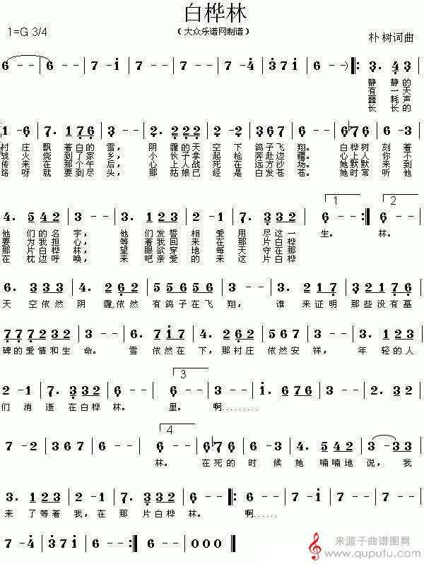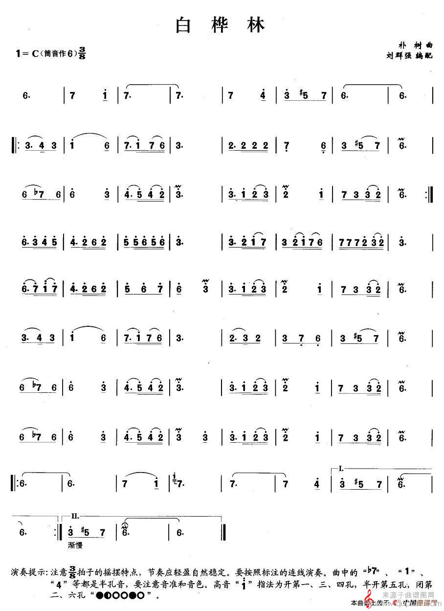 曲谱图网为您提供白桦林简谱(白桦树洞箫竖笛演奏曲谱)找谱子,就上曲谱图网。
