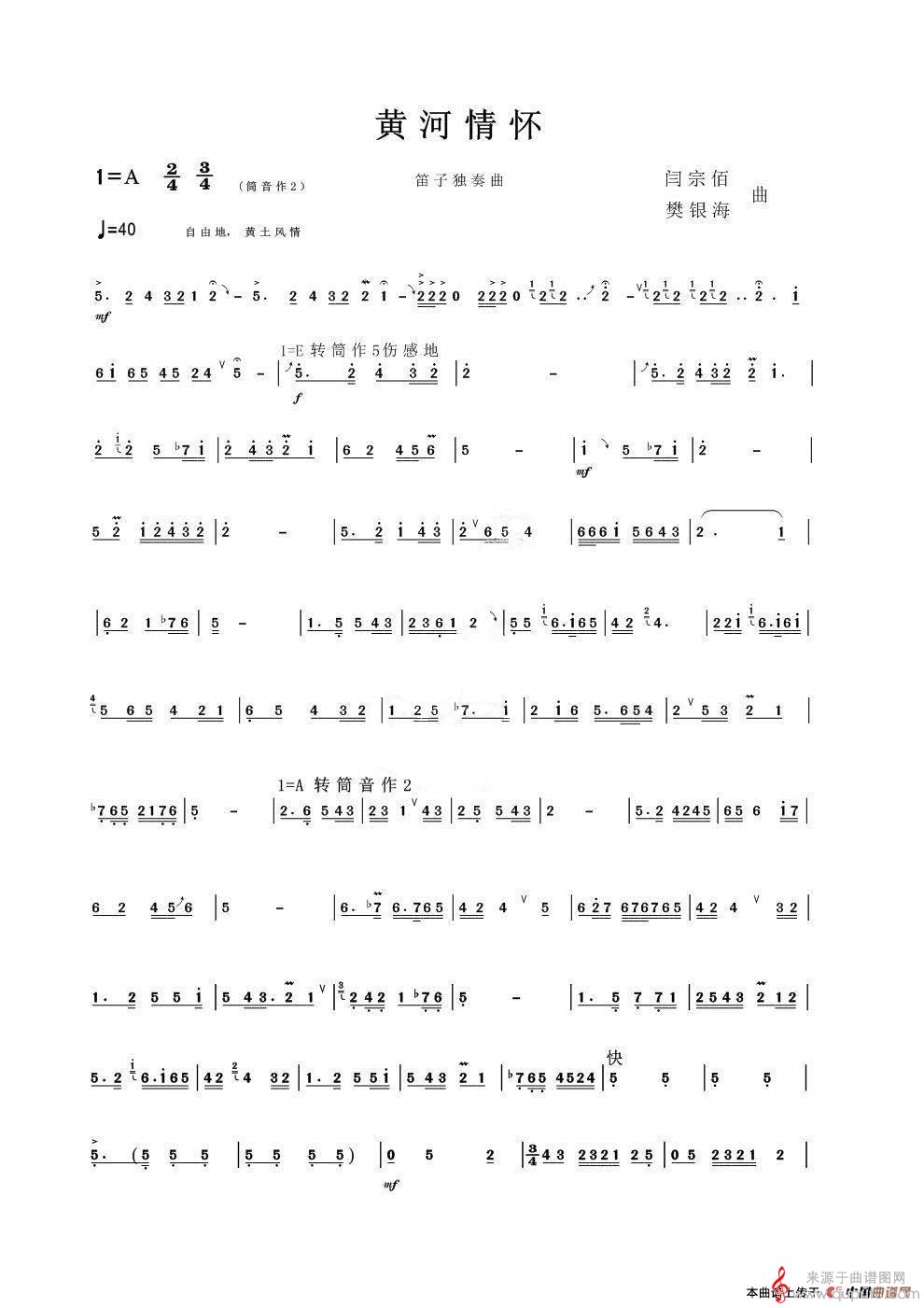 曲谱图网为您提供黄河情怀简谱(黄河情怀笛子独奏曲曲谱)找谱子,就上曲谱图网。