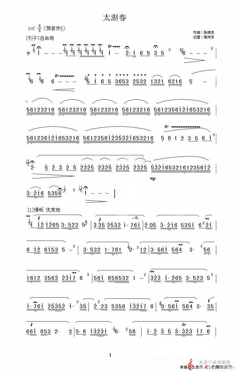 曲谱图网为您提供太湖春曲谱(太湖春笛箫竹笛演奏曲谱)找谱子,就上曲谱图网。