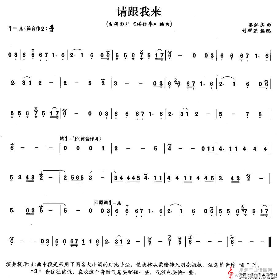 请跟我来简谱(请跟我来洞箫乐曲曲谱)