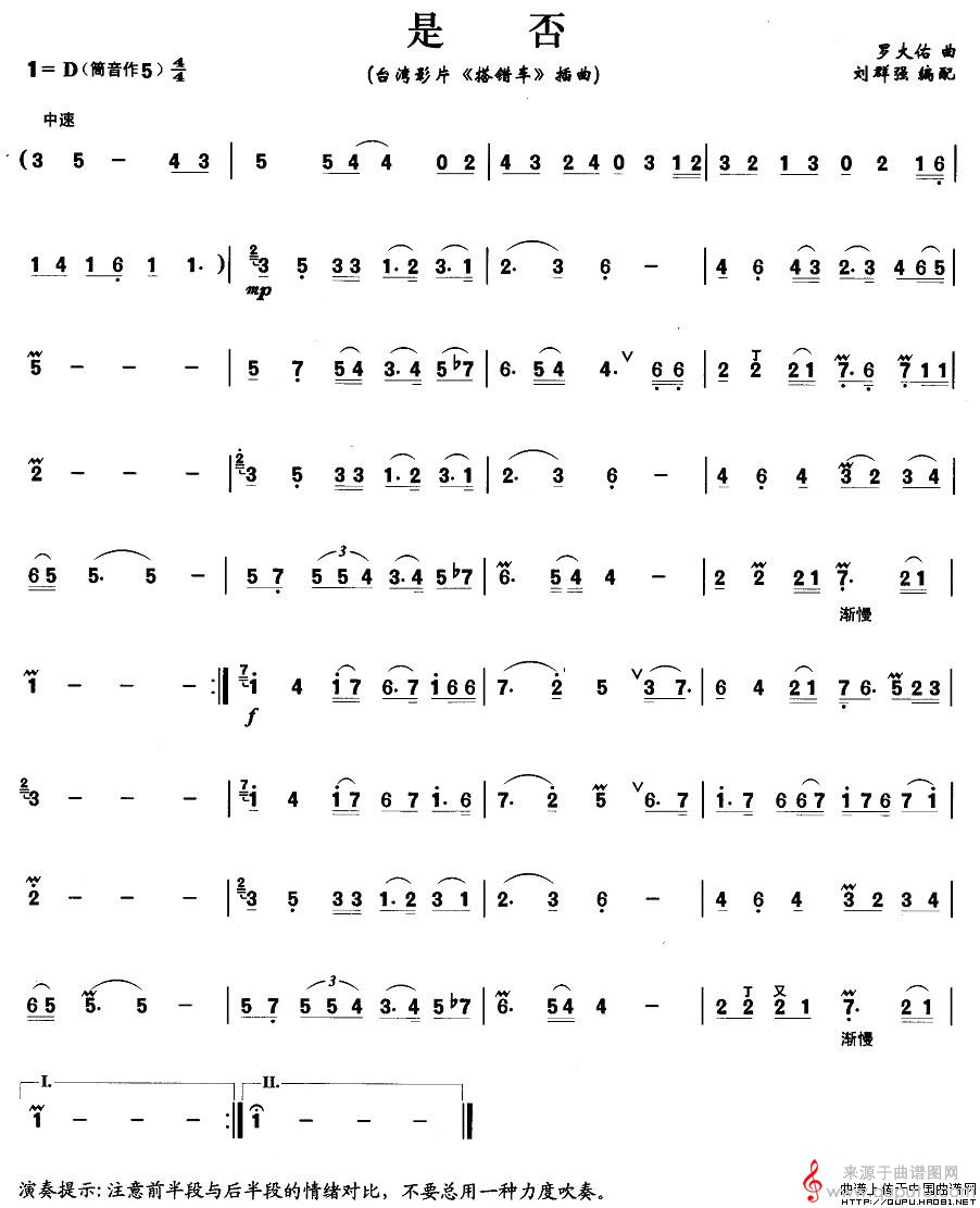 是否歌曲简谱(是否洞箫笛子演奏简谱)