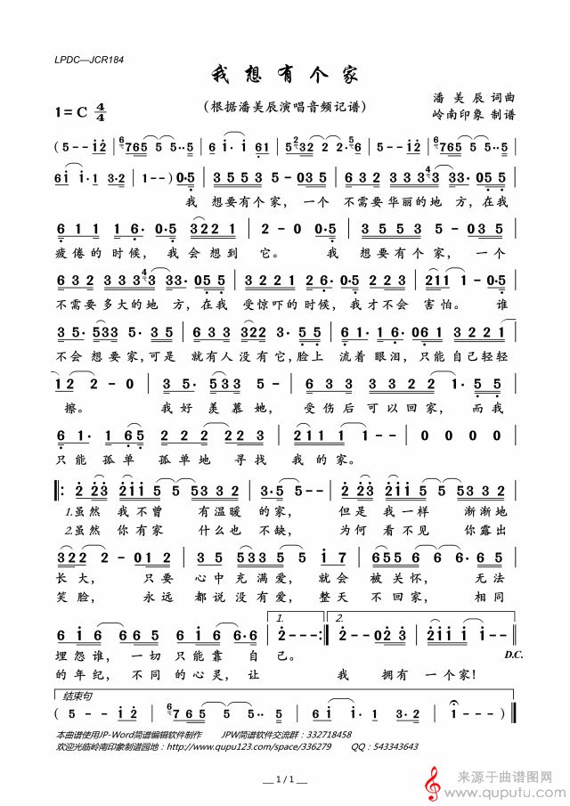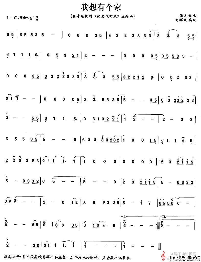 曲谱图网为您提供我想有个家个曲曲谱(我想有个家竹笛独奏简谱)找谱子,就上曲谱图网。