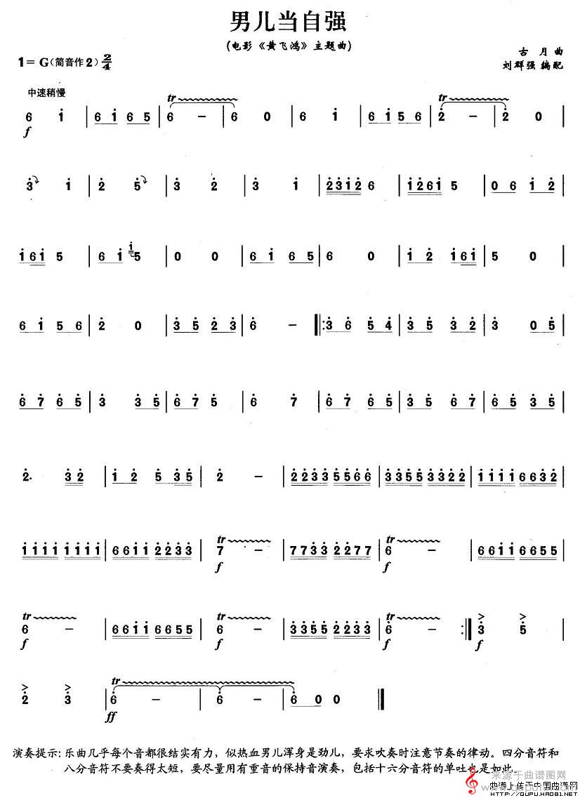男儿当自强简谱(男儿当自强笛子演奏曲谱)