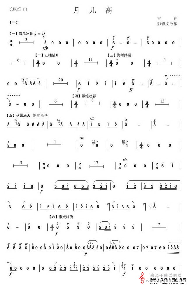 曲谱图网为您提供月儿高简谱(月儿高民族管弦乐曲长膜笛分谱)找谱子,就上曲谱图网。