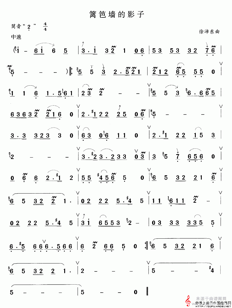 曲谱图网为您提供篱笆墙的影子曲谱(篱笆墙的影子笛子演奏曲谱)找谱子,就上曲谱图网。