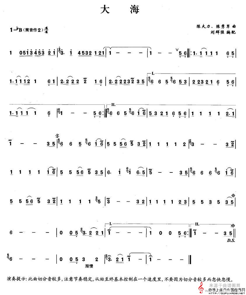 大海简谱(大海箫曲乐谱)