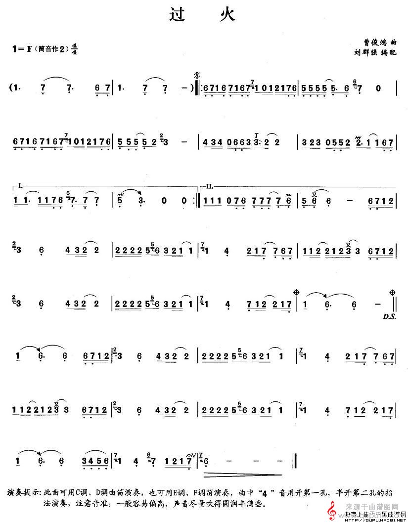 过火简谱(过火笛子演奏曲谱)