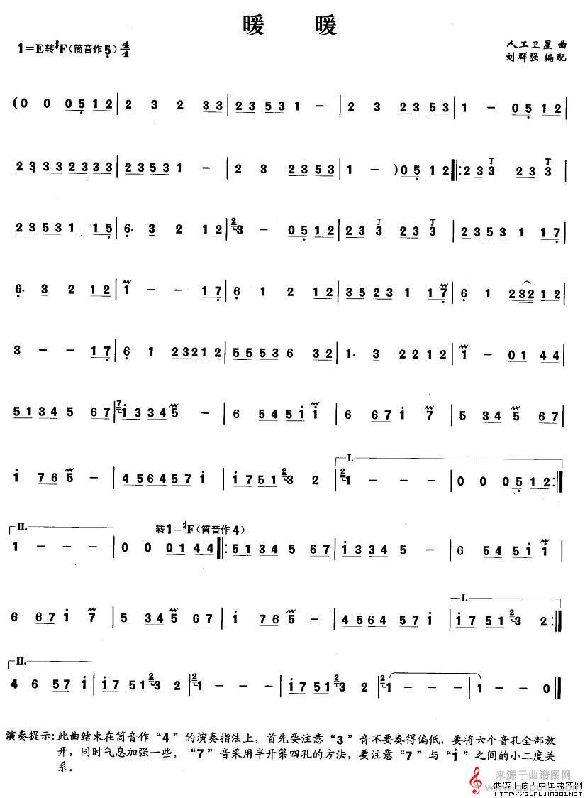 曲谱图网为您提供暖暖简谱(暖暖竹笛独奏简谱)找谱子,就上曲谱图网。