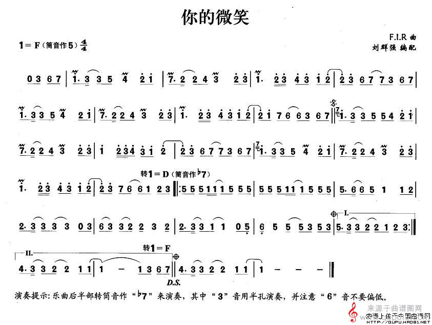 曲谱图网为您提供你的微笑简谱(你的微笑洞箫乐曲简谱)找谱子,就上曲谱图网。