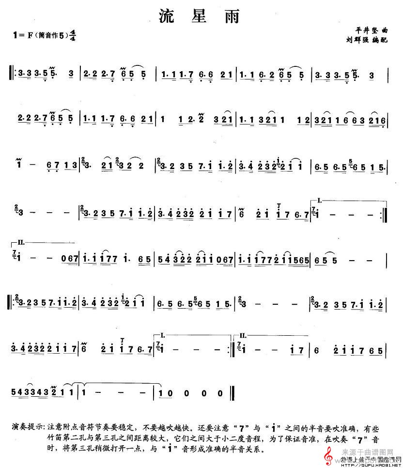 曲谱图网为您提供流星雨简谱(流星雨竹笛演奏简谱)找谱子,就上曲谱图网。