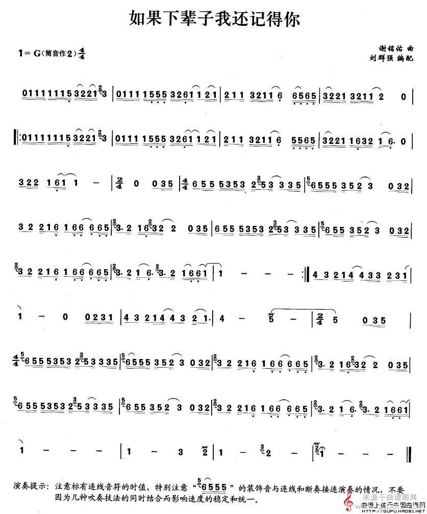 如果下辈子我还记得你曲谱(如果下辈子我还记得你笛子独奏简谱)
