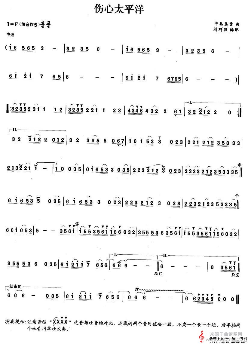 曲谱图网为您提供伤心太平洋简谱(伤心太平洋笛子演奏曲谱)找谱子,就上曲谱图网。
