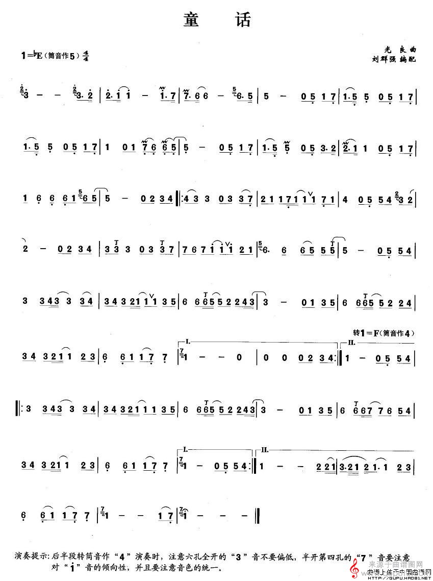童话歌曲曲谱(童话笛箫乐曲曲谱)