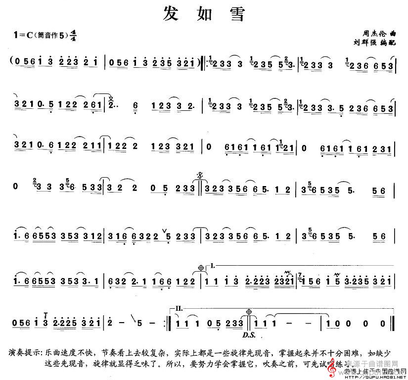 发如雪简谱(发如雪笛子伴奏曲谱)