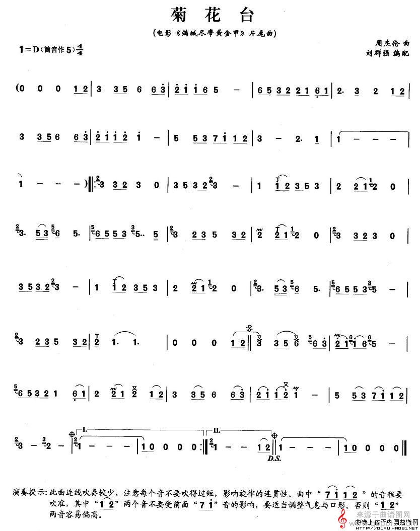 菊花台简谱(刘群强编配版)(菊花台笛子独奏简谱)